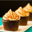 8. To finish, pipe frosting onto the top of each cupcake (or use an offset spatula to spread the frosting), drizzle with some additional salted caramel sauce, and sprinkle with a pinch of fleur de sel. (Note: I used an Ateco #864 decorating tip to frost these cupcakes.)