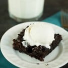 4. Bake for 40 to 45 minutes (40 minutes if using 9-inch pan, 45 minutes if using an 8-inch pan) and serve warm. When serving, invert the cake squares onto the plate; the pudding sauce will be on top.